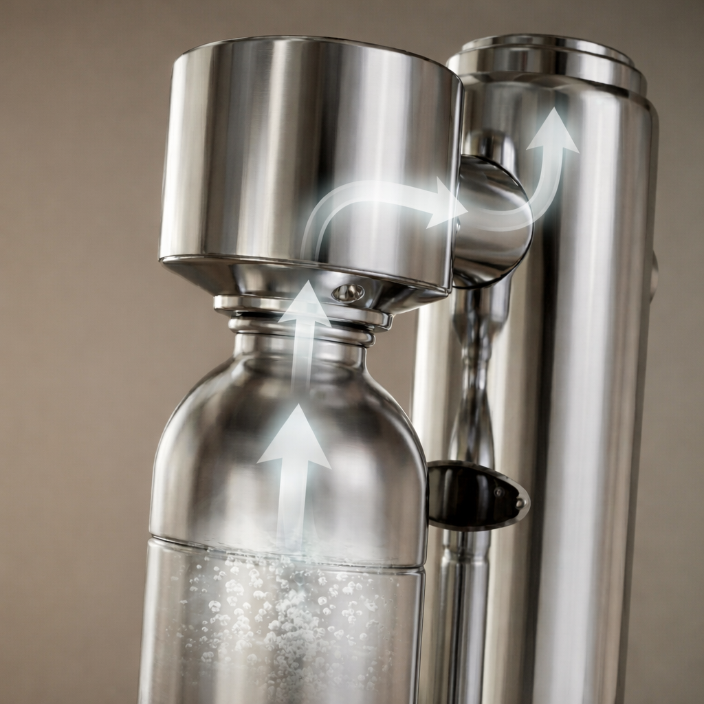 Die meisten Sprudler entladen den Druck laut und unkontrolliert. Unser integrierter Druckablass sorgt für ein sicheres und sanftes Erlebnis noch bevor der Sprudelvorgang endet. Kein Spritzen, keine Druckexplosion – reine High-End-Technik, die du bei jeder Nutzung spürst.